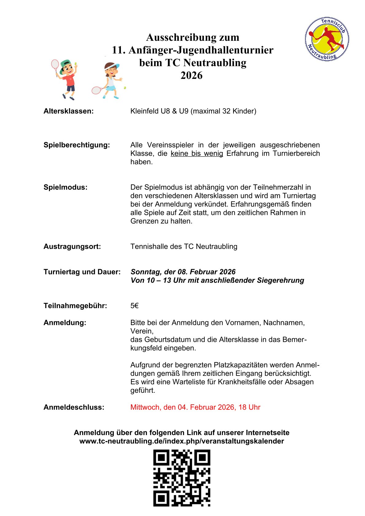 Tennisclub Neutraubling e.V | Tel: 09401 / 5397418 | E-Mail: info@tc-neutraubling.de
